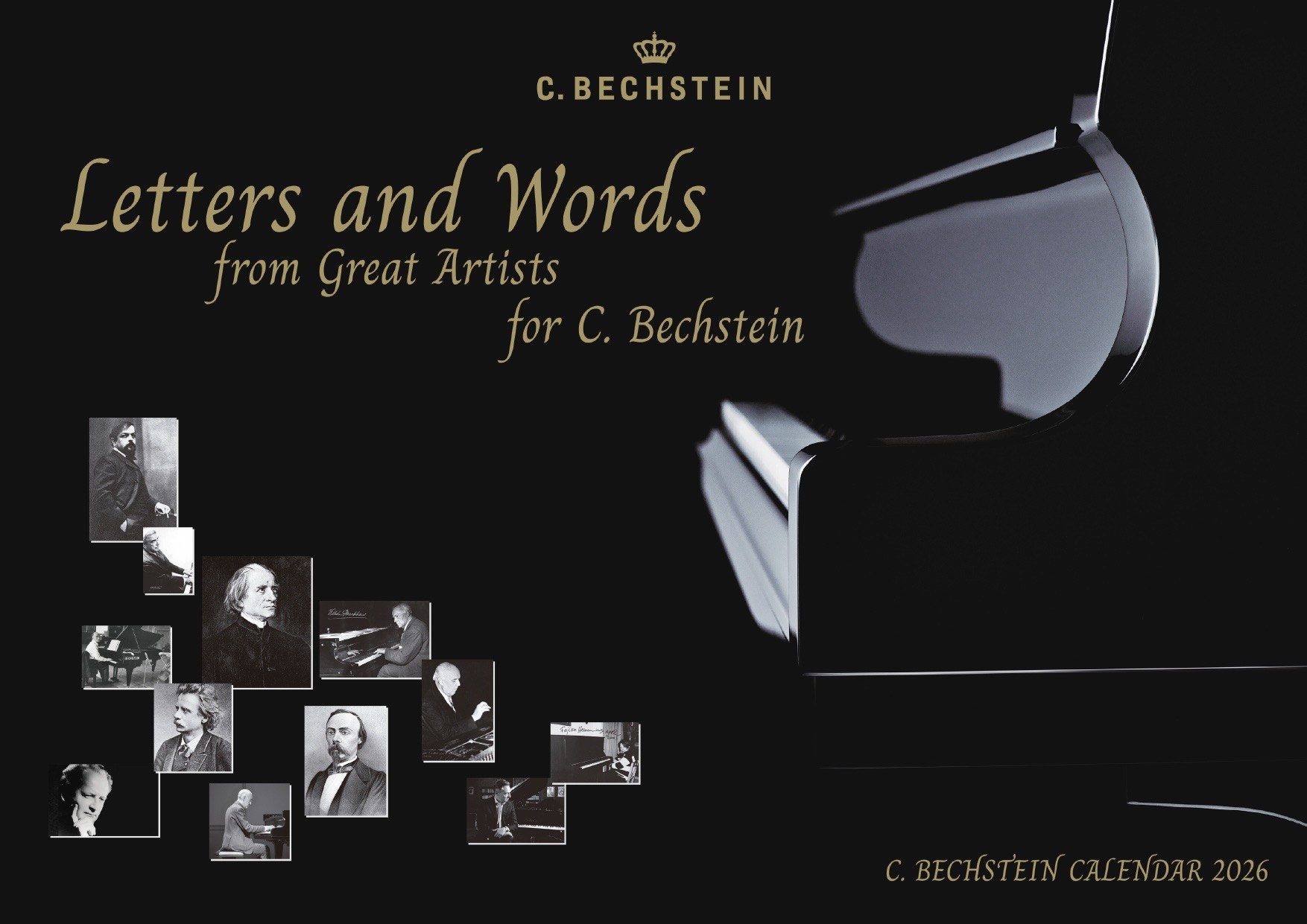 170年以上の歴史を持つC.ベヒシュタインのピアノは、フランツ・リストやドビュッシーなど偉大な音楽家たちから愛されてきました。2026年のカレンダーではC.ベヒシュタインに寄せられた、こうした偉大な音楽家たちの筆跡やメッセージを紹介します。