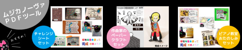 「ムジカノーヴァ」の付録教材“トレーニングタイム”“チャレンジシートセット”“作曲家のペーパークラフトセット”“ピアノ教室おたのしみセット”がダウンロードできます。