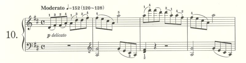 奈良井 まぁそれはそうね。楽譜に指づかいが印刷されていると強制力があるから、無理して我慢して自分に合っていない指づかいで弾く人も多いもんね。練習曲だから、テクニック的に成長を促すために書いてある指や、音型を最適に表現するための指づかいもあるけど、臨機応変、柔軟に考えていきたいね。やわらかいタッチ作りのためにも。