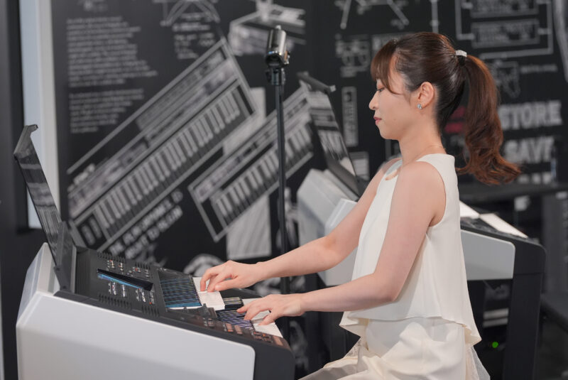 大畑さんは「1曲目はスライダーの機能でボリュームやテンポを変え、バランスを調整して楽器の自然なフェードインやアウトをつくりました。以前は多くのレジストレーションを使わないとできなかったことが、新しい機能でシームレスに表現できるようになりました。また、エレクトーンでクラシックを演奏するときは、特にアフタータッチの表現が大切だと感じています。その値をより細かく設定できるようになったので、2曲目に使った尺八や琴のように、和楽器特有の揺れや息遣いもよりリアルに表現できると感じています」とコメントした。