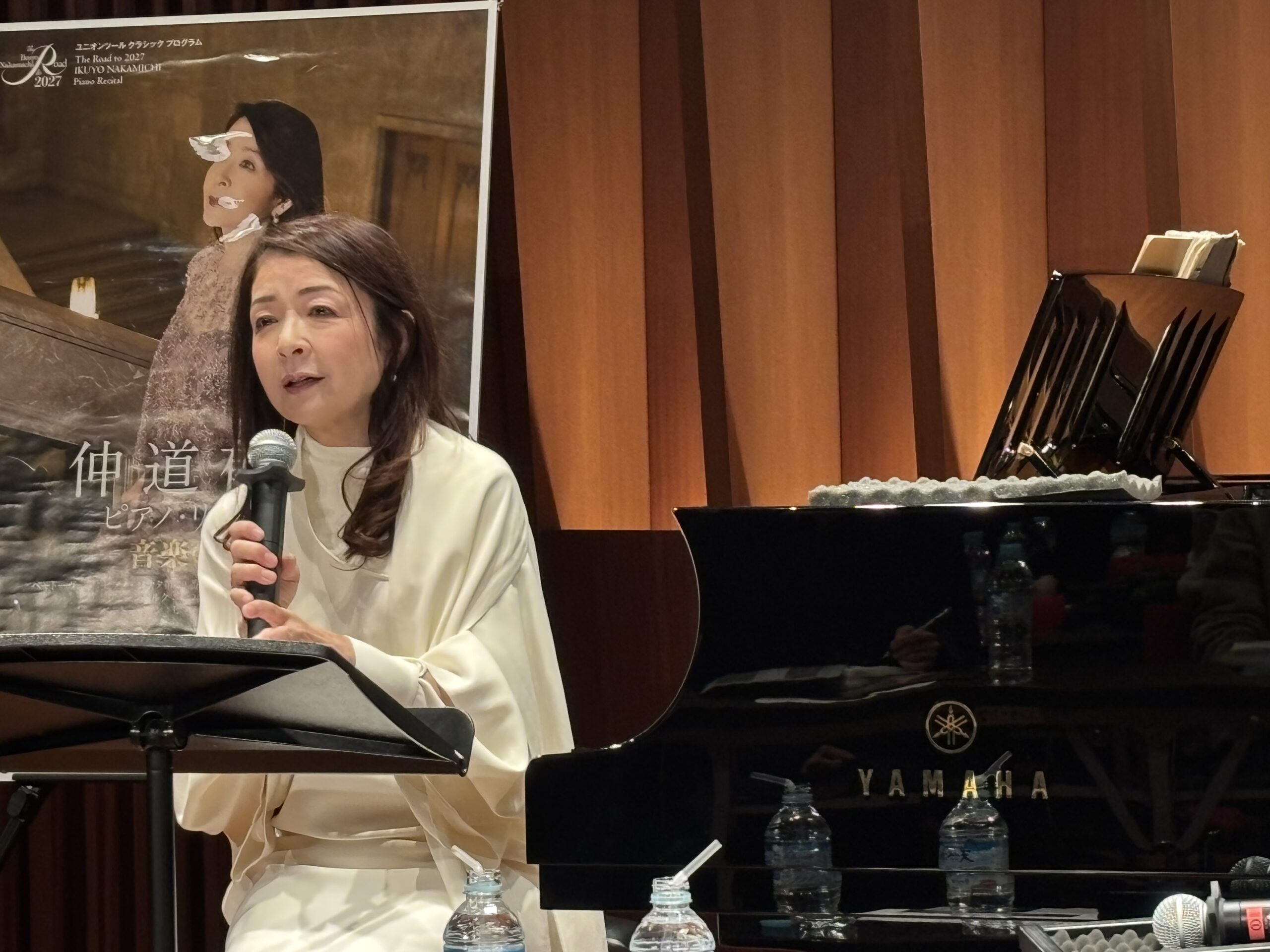 ピアニストの仲道郁代さんが、デビュー40周年とベートーヴェン没後200周年が重なる2027年に向けて、10年にわたる「The Road to 2027リサイタル・シリーズ」を進行中。9年目となる2026年の5~6月には、西宮・浜松・名古屋・東京で「音楽の哲学」と題したリサイタルが予定されています。これに先立ち3月19日、ヤマハ銀座ビル本館コンサートサロンで記者懇親会が行われました。