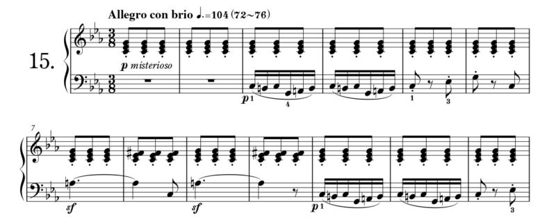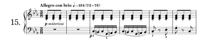 蓮田 もともと、バラードは詩だったり歌だったりするわけだが、器楽曲に取り入れたのはショパンだと言われているからな。バラードは抒情的で物語性の高い様々な旋律で構成されるドラマチックな曲だ! この第15番も単純ではあるが、なかなかにドラマ性があるしな。フレーズに物語を作り込んで表現していくのが醍醐味だろう。