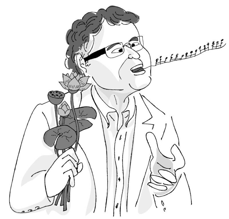 蓮田 なんだ、いろいろうるさいな、もう。なになに、心得二か、うむ、拍子は8分の3! 1小節を一つのノリで作る拍子感だ。このせわしなさと勢いがいいよな。調性はなんともドラマ性のあるc-moll。やっぱりバラードはmollだな。うん。